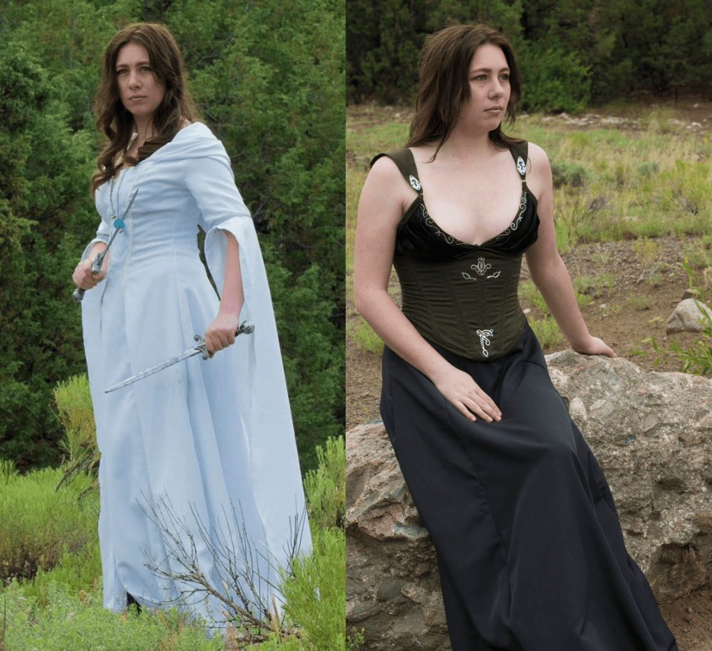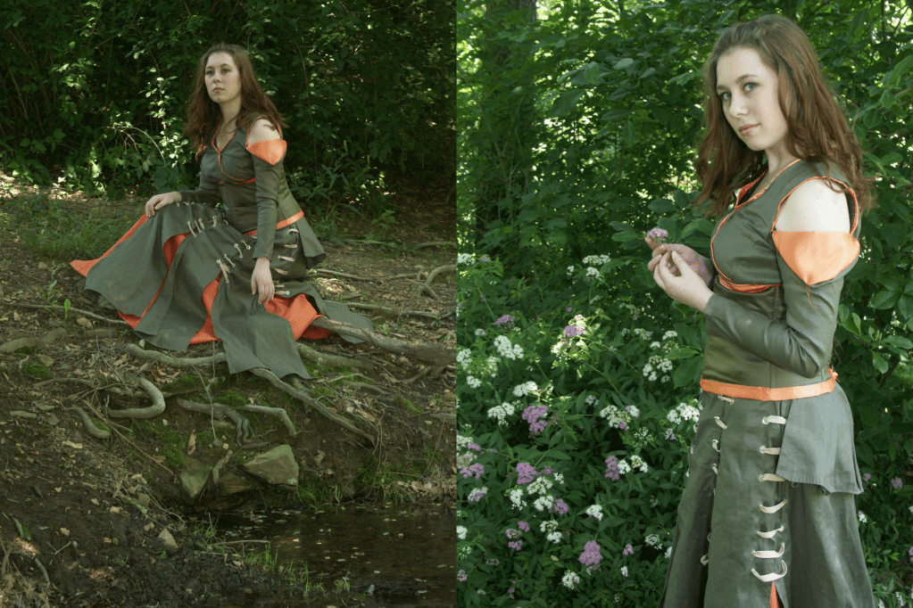 This cosplay holds a special place in my heart, as it was my first real foray into cosplay using a combination of pre-made patterns and draped patterns. It was also my first project on my sewing machine. The design is based on my favorite dress of Maid Marian’s from the BBC Robin Hood show that ran back in 2006-2009 (and was one of my first obsessions).