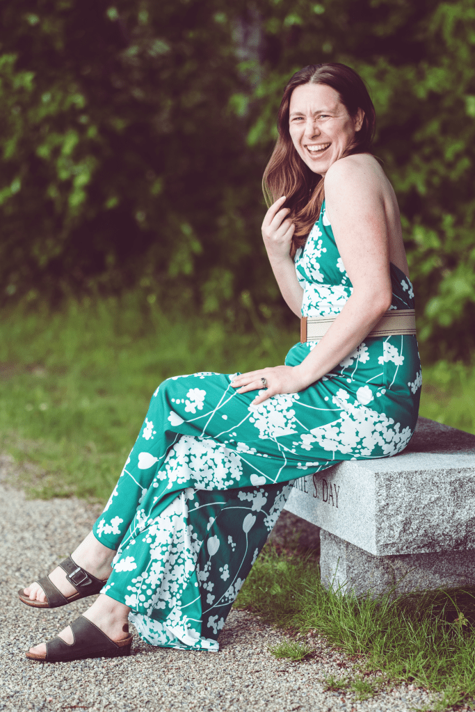 This jumpsuit I made last summer from a pattern purchased online. It was very simple, and the printed cotton fabric was super easy to sew. I didn’t have a long enough zipper, but improvised with a tie-back between my shoulder blades. Unfortunately, I gained a little pandemic weight, and it’s a bit tight now! Hopefully I’ll be able to fit back into it after some biking and hiking.